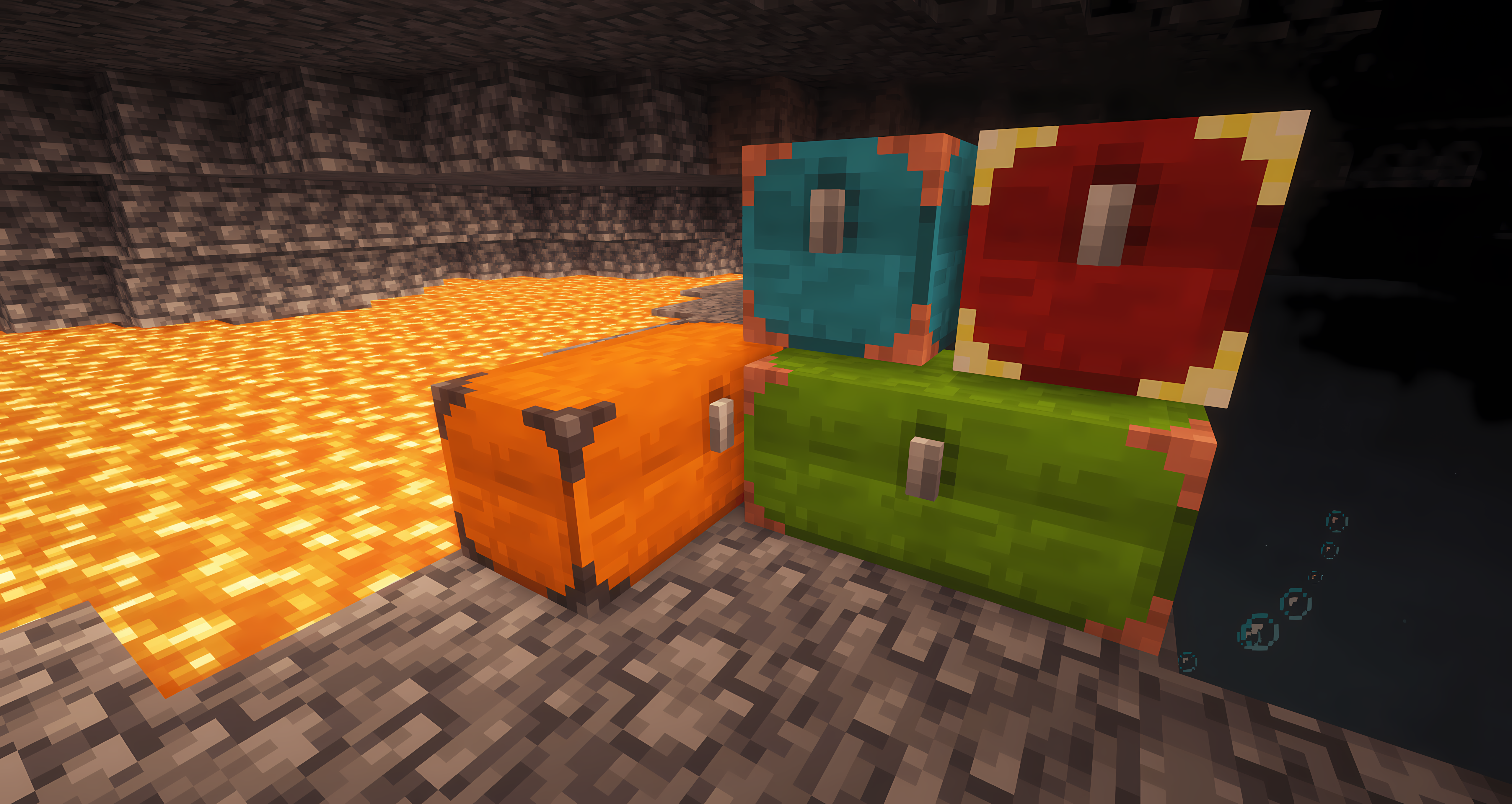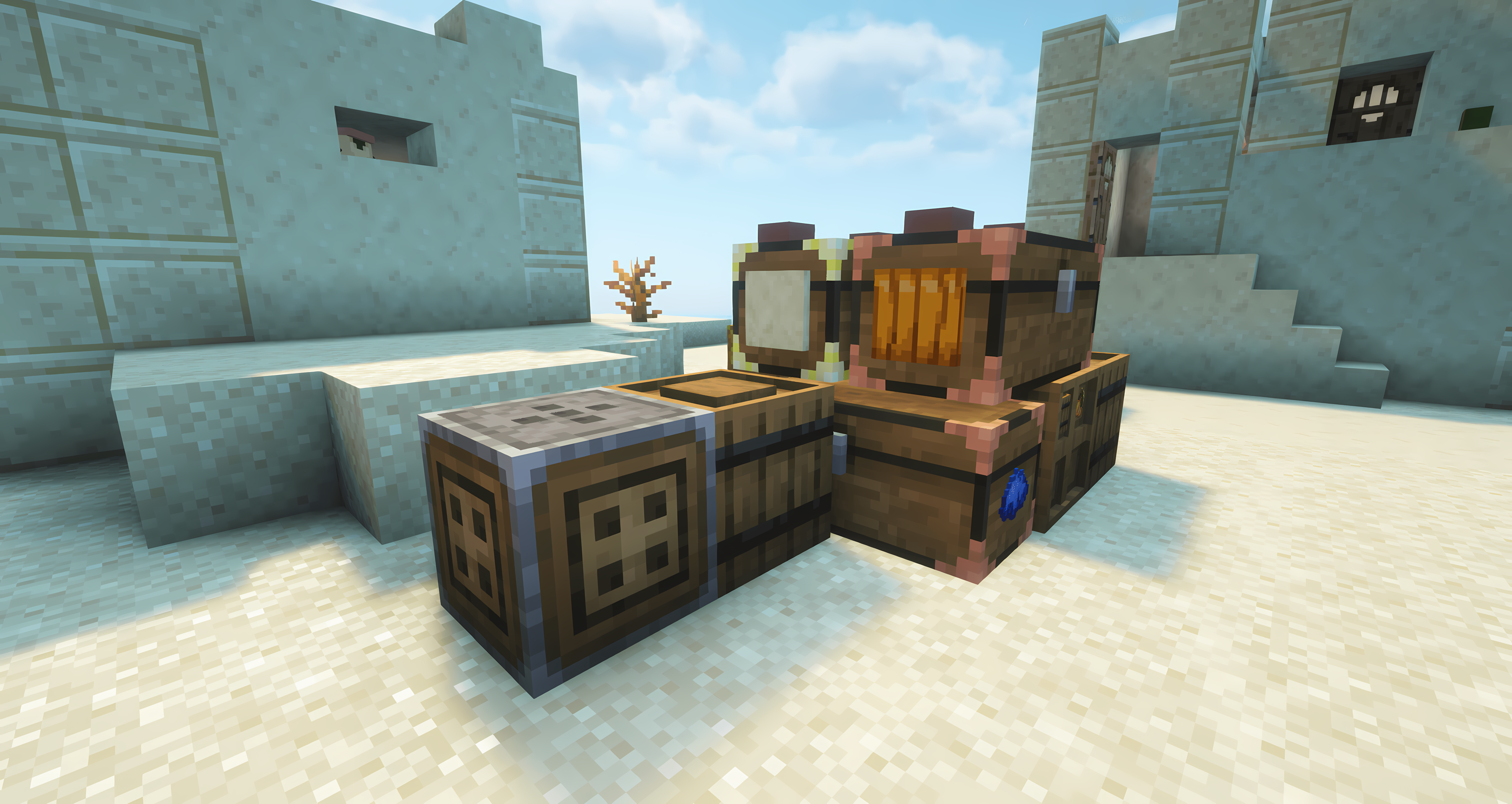 Añade Barrels, Cofres y Shulker Boxes, todos con varios niveles (“tiers”) que se pueden mejorar.